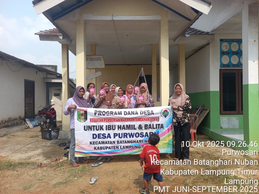 Pemerintah Desa Purwosari melaksanakan kegiatan pembagian makanan tambahan (PMT) bagi balita, ibu hamil, hingga lansia yang tersebar di setiap Posyandu di wilayah Desa Purwosari. Kegiatan ini merupakan bagian dari upaya meningkatkan gizi masyarakat serta mendukung program kesehatan desa, khususnya pencegahan stunting dan perbaikan gizi keluarga.